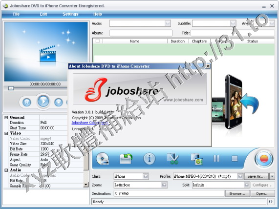 • Joboshare DVD to iPhone Converter v3.0.6.0331 英文正式版(音視頻轉換軟體)